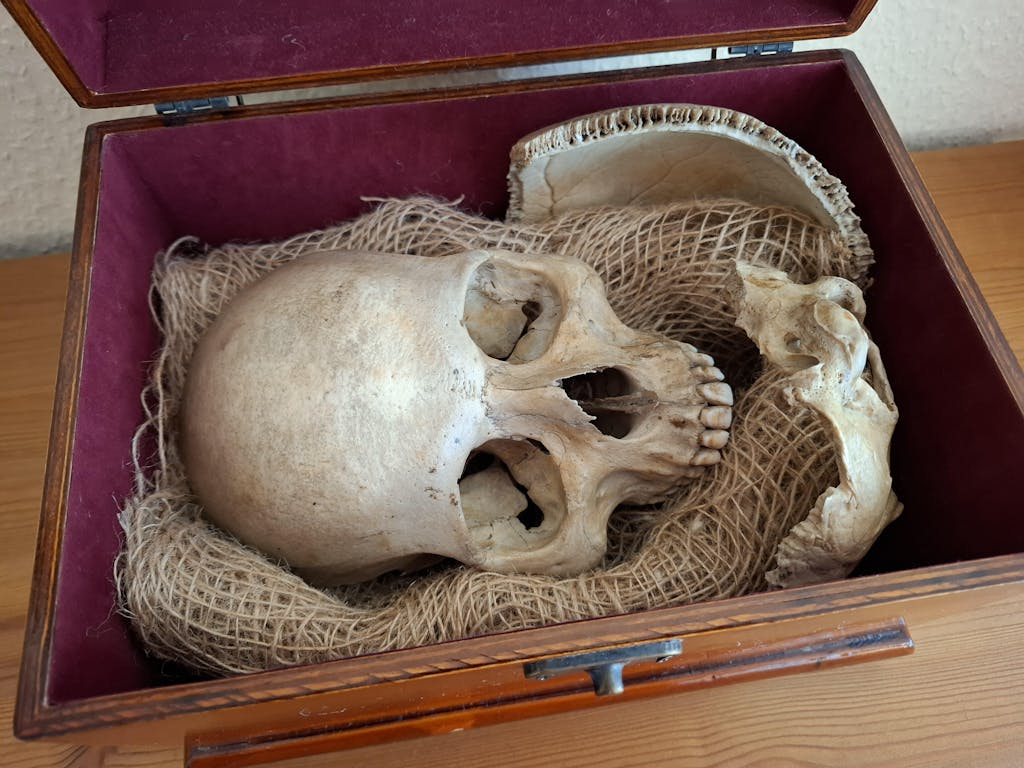 Menschliche Schädel und Knochen werden uns von pensionierten Ärzten, medizinischen Forschern, Zahnärzten und ehemaligen Universitätsmedizinern zur Verfügung gestellt.